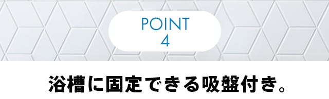 ※浴槽で普段首や頭を預ける場所に【BATHPAD】の枕を充て、浴槽に吸盤を貼り付けてご使用ください。