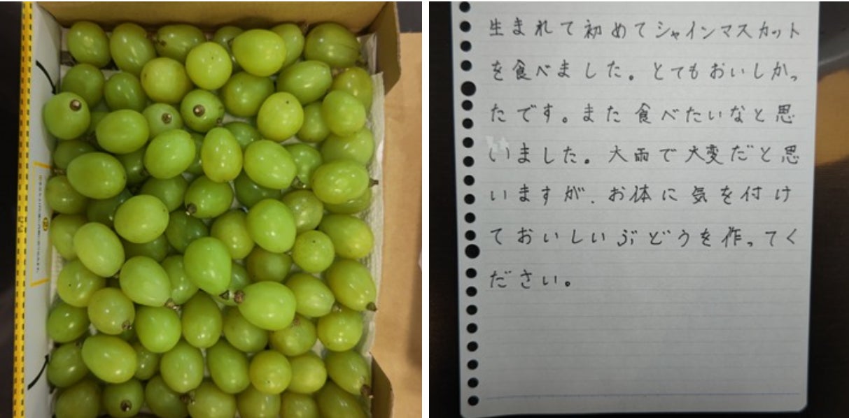 また当初のご予約をキャンセルしてしまう事となったお客様へは多大なるご迷惑をおかけしましたが、代わりに”被災にあったぶどう” をご購入していただけ沢山の応援メッセージを頂戴しました。
