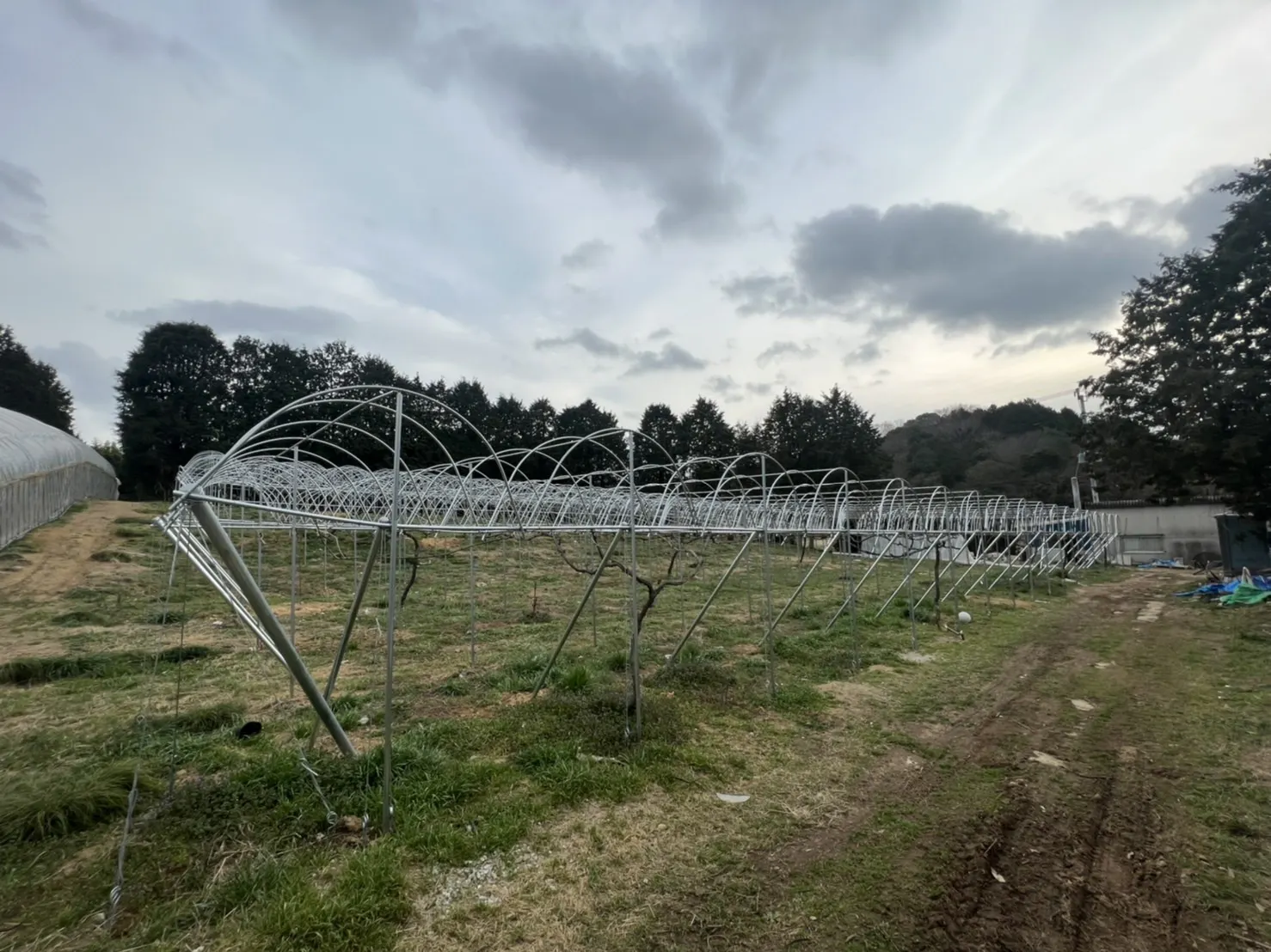 シャインマスカットはトンネルのアーチに隙間がなくて、ピオーネは80センチくらい開けています。
