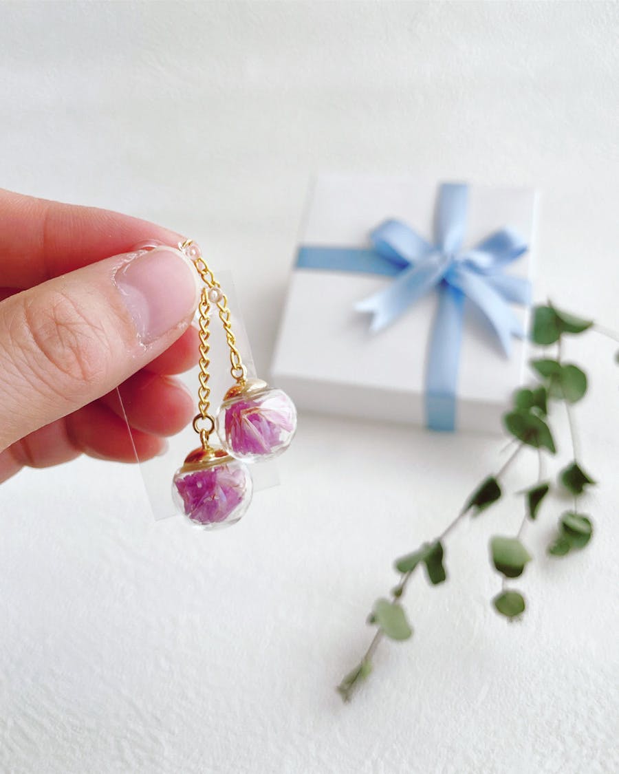 本物のお花、ガラスを使用した、高級感のある上品なデザインです。