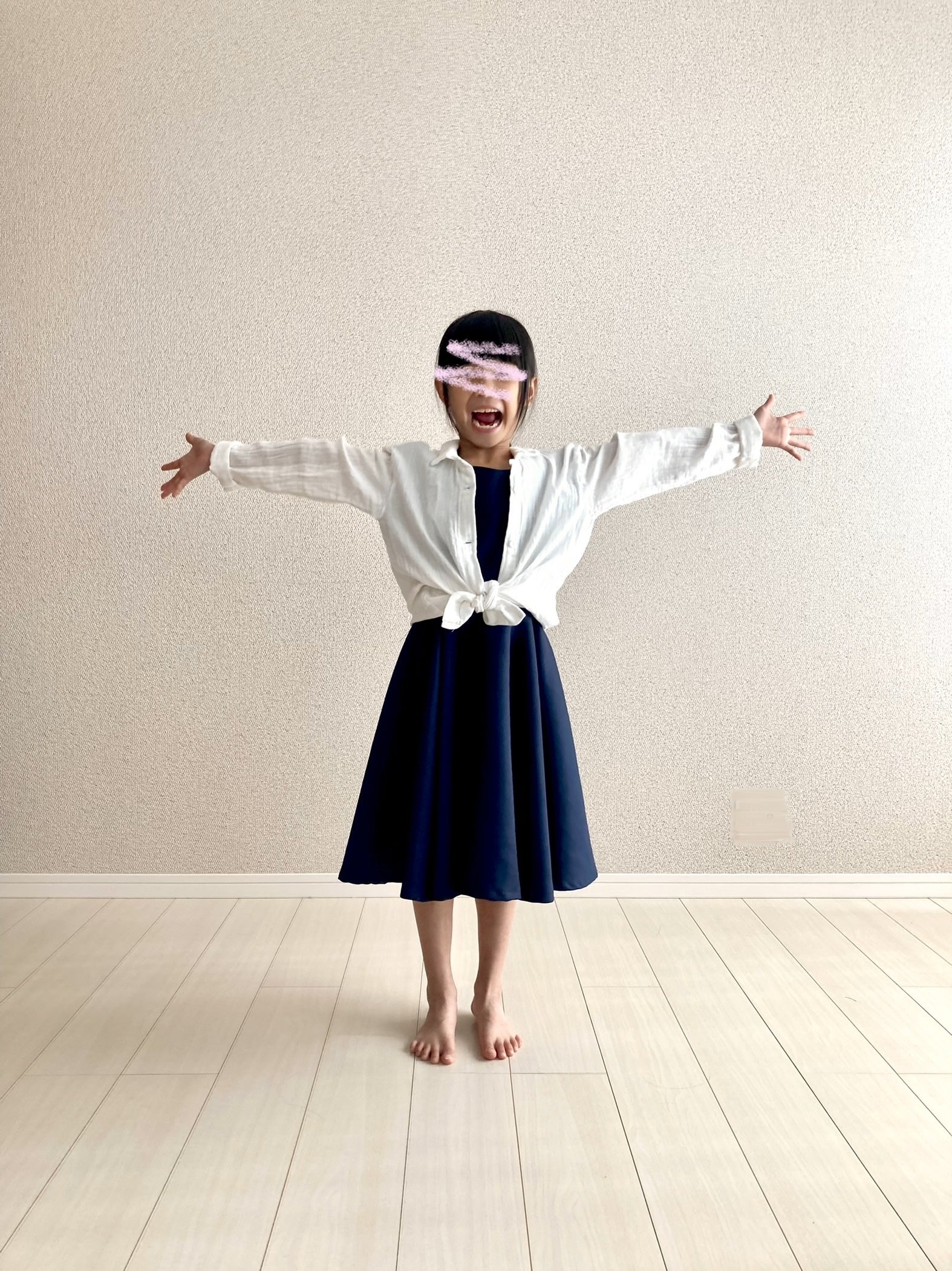 動画では、身長120cmの子に、140㎝のシャツを似合わせる!
