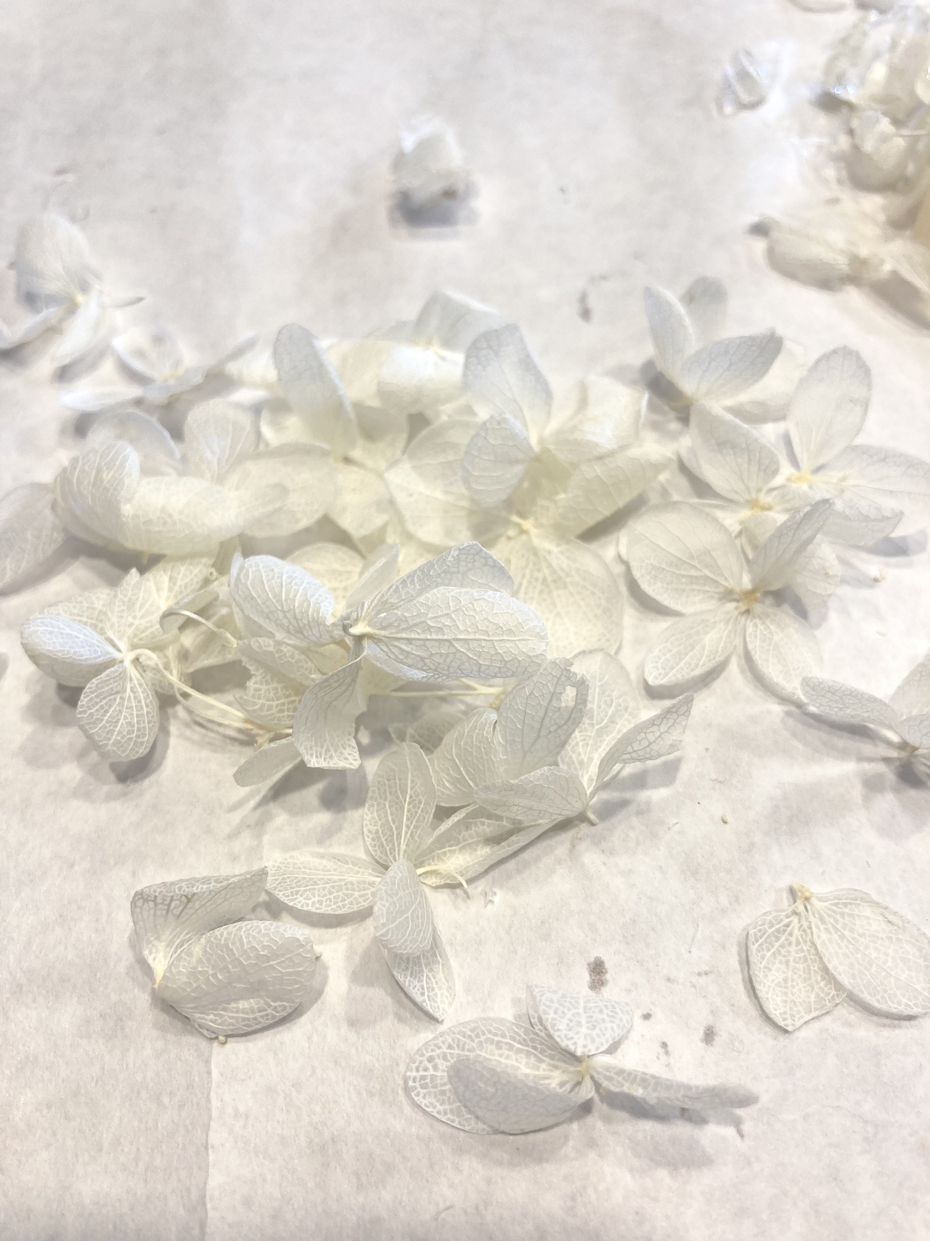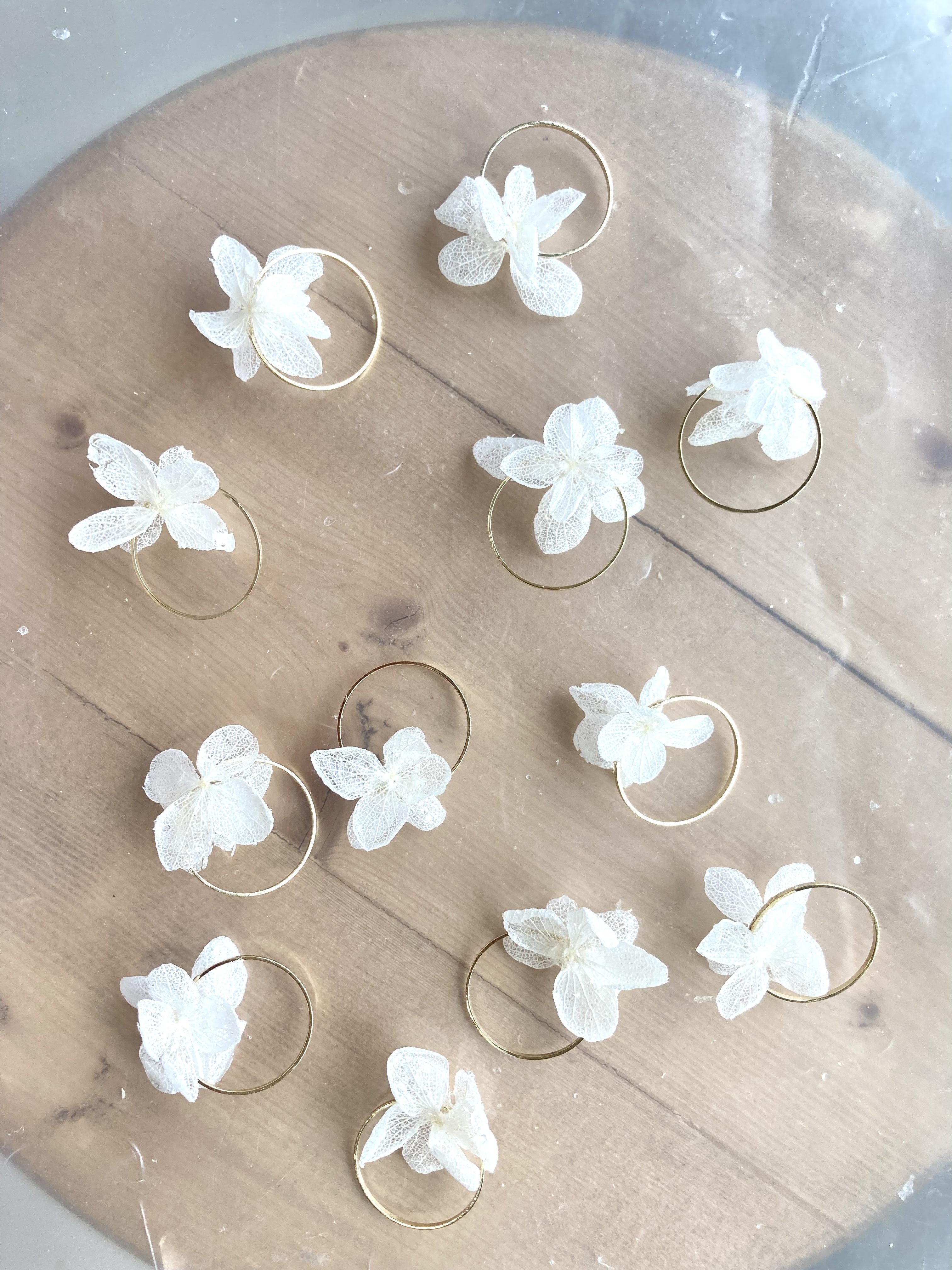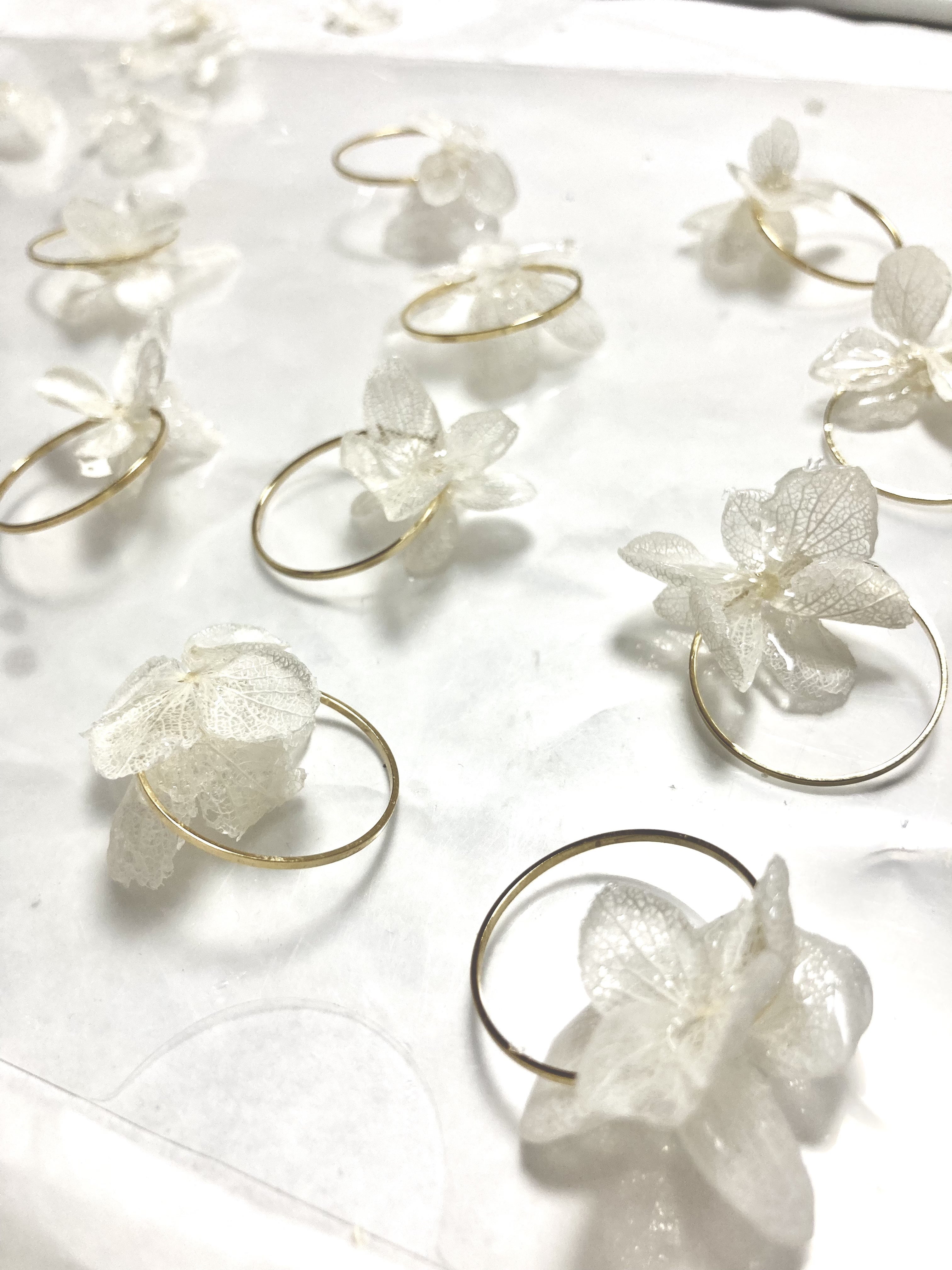 一枚ずつガクをとり、丁寧にコーティング、アクセサリーへと組み立てていく、カフーオリジナルのデザインです♡