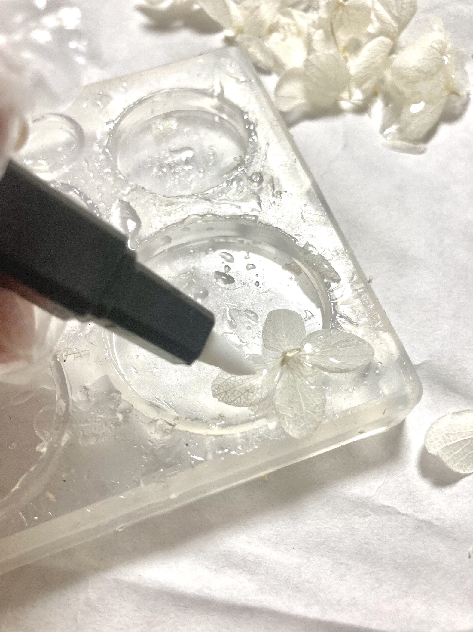 一枚ずつ、何度も何度もレジンを重ねて、コーティングしていきます。