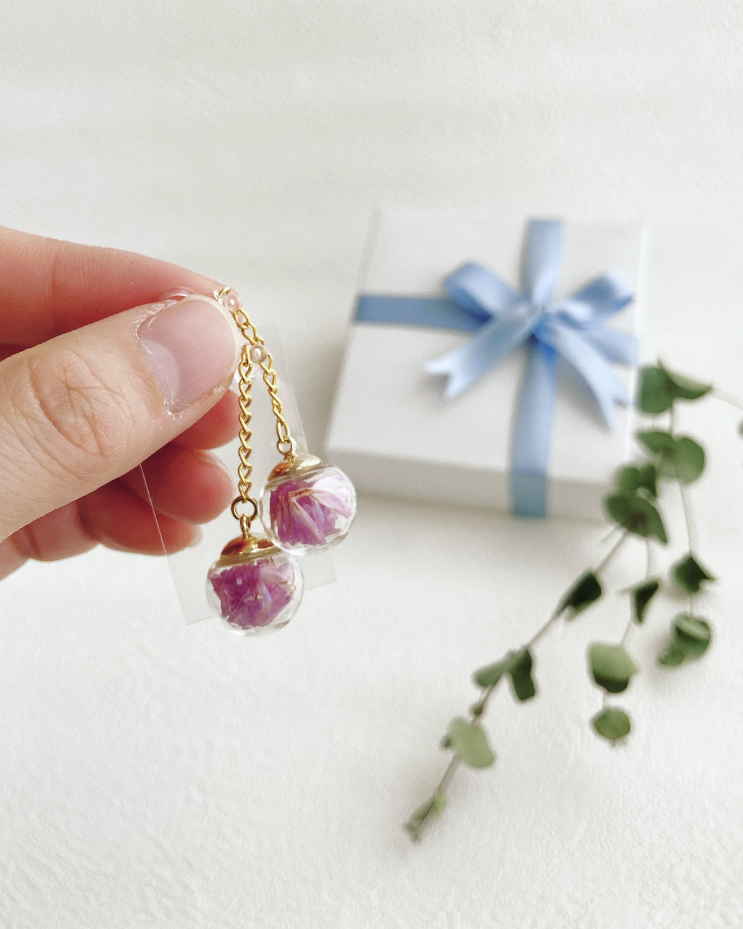 本物の紫陽花を使用したピアス、イヤリング♡
