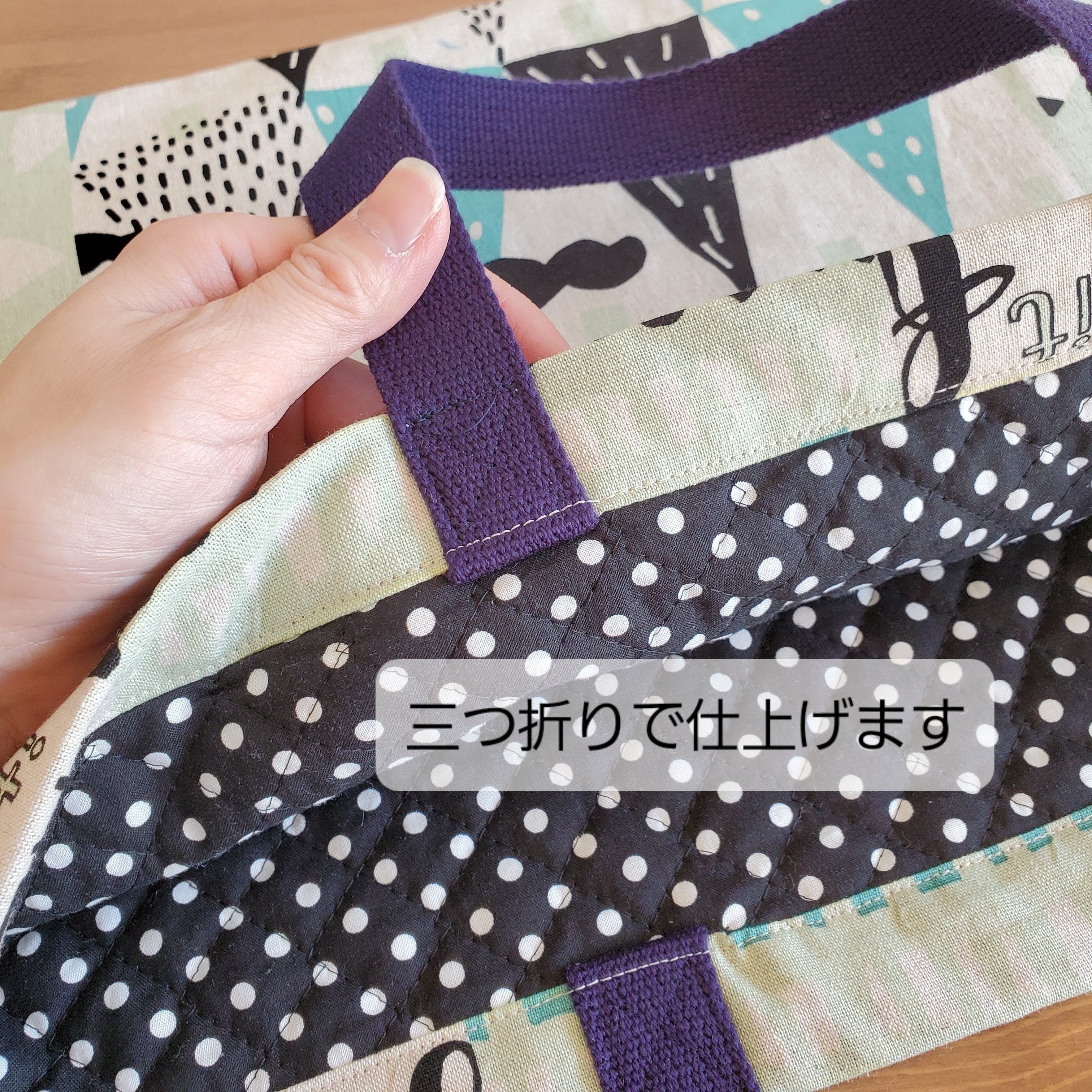 ・絵本バッグ(綿プリント×キルティング)