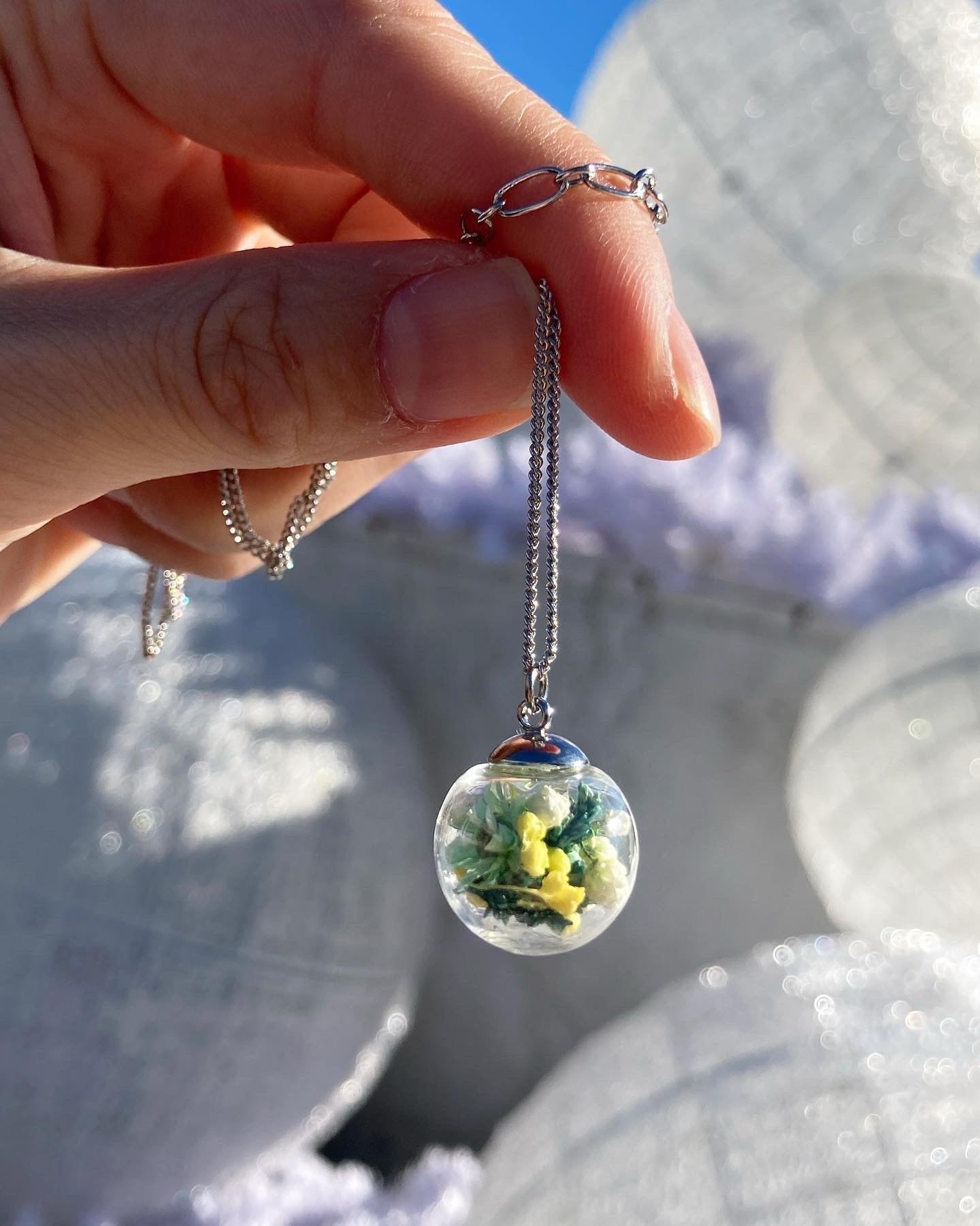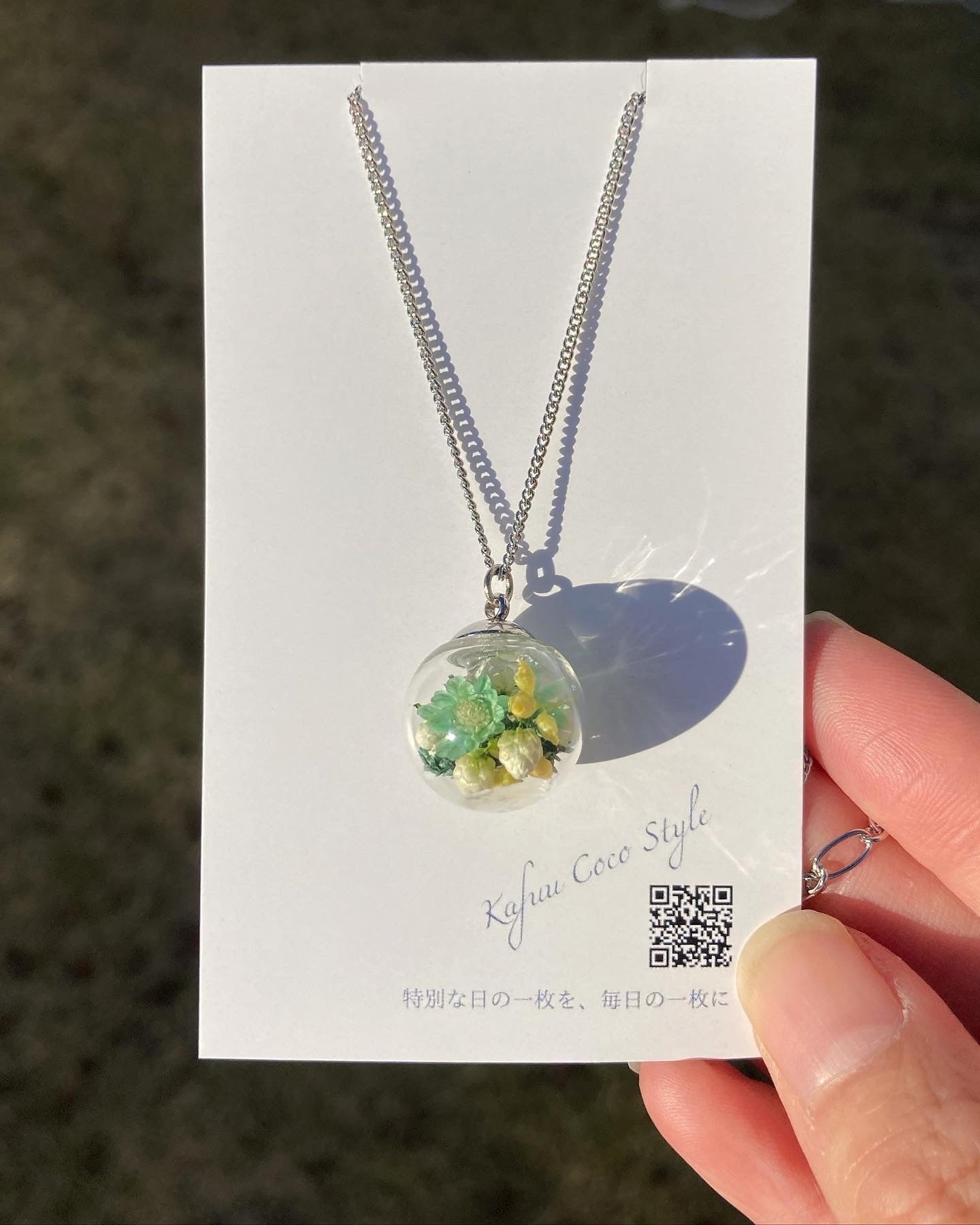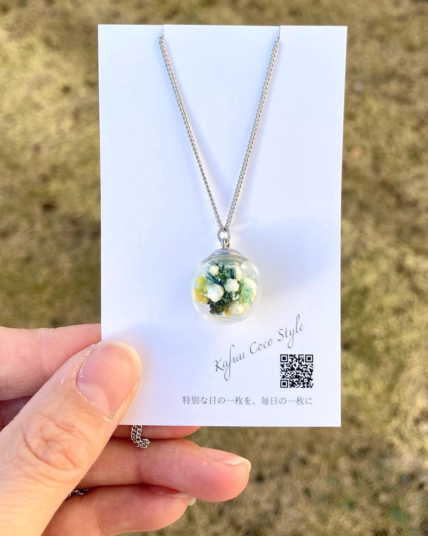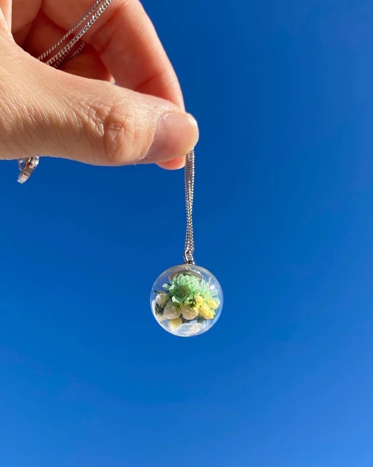 本物のガラスの中にドライフラワーを入れてお作りしています♡