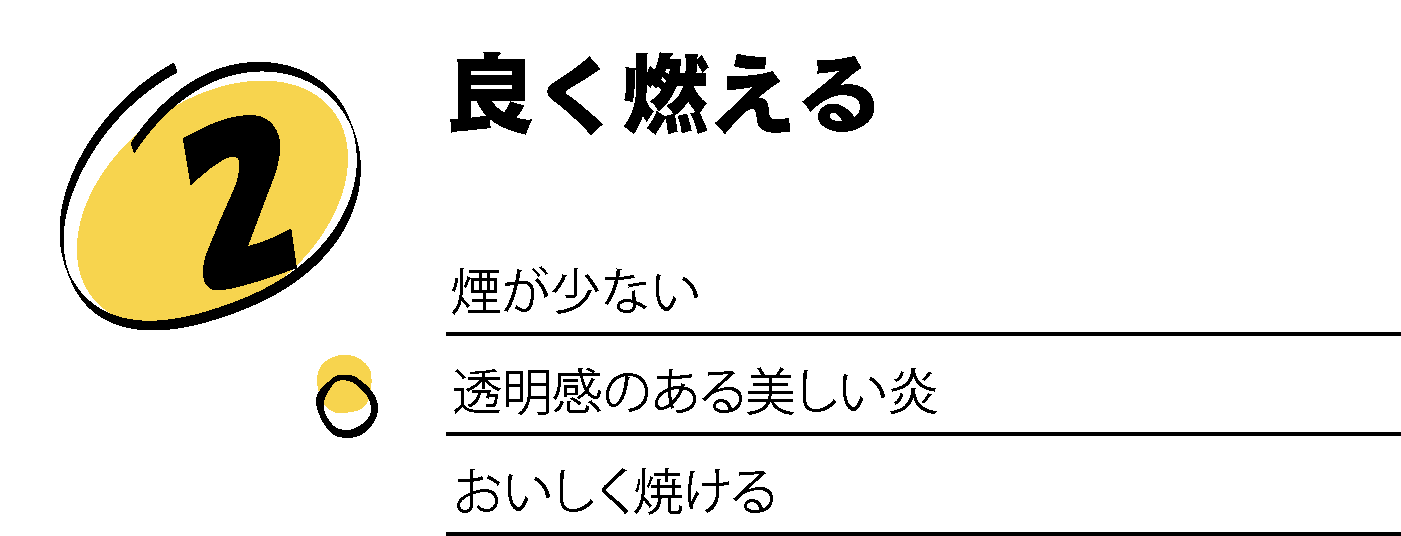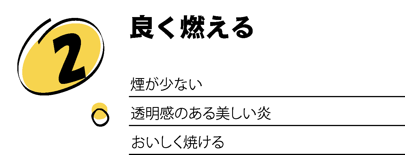 煙や一酸化炭素の発生を抑制、燃え残りが少ない。