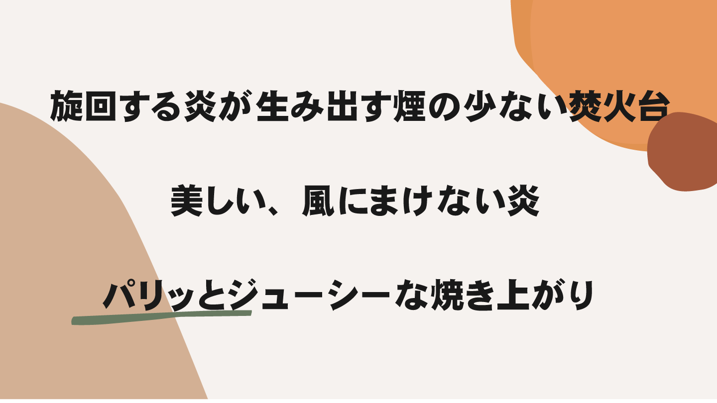「煙が少ないので、匂いがつきにくく焚火が快適」