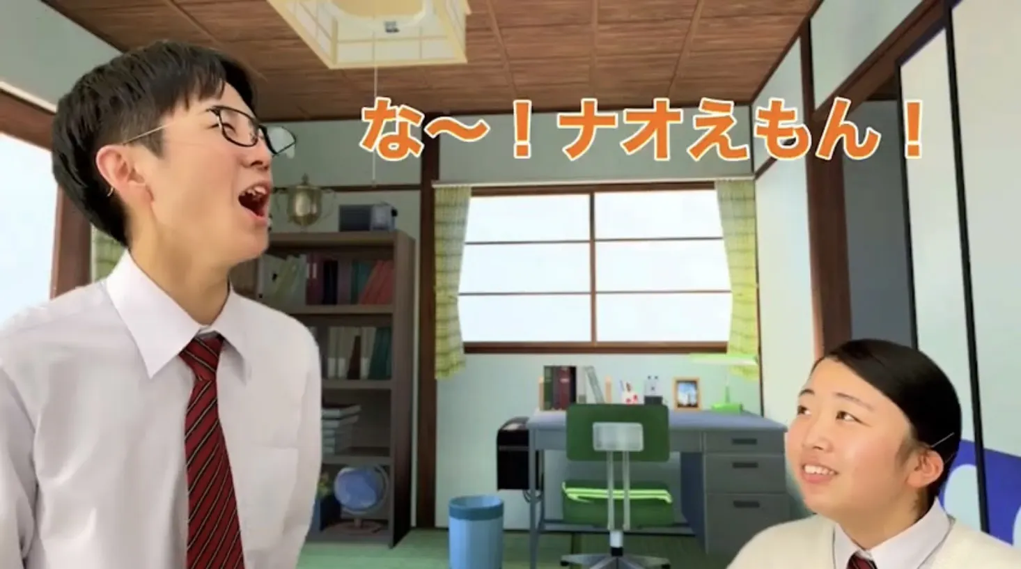 クラリネットパートより、「ドラえも…」…ではなくて「ナオえもん」と「りく太君」が登場してクラウドファンディングをお願いするビデオメッセージが届きました。
