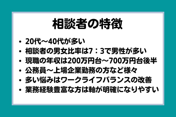 これまでにご相談いただいた方の特徴はこちらの通りです。
