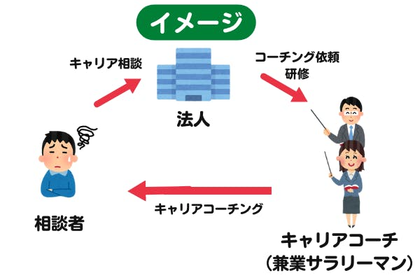 キャリアコーチは兼業サラリーマンの方に担っていただきます。本業を持ちつつも、困っている人に寄り添い、他者貢献したいと思っている方を厳選して採用します。