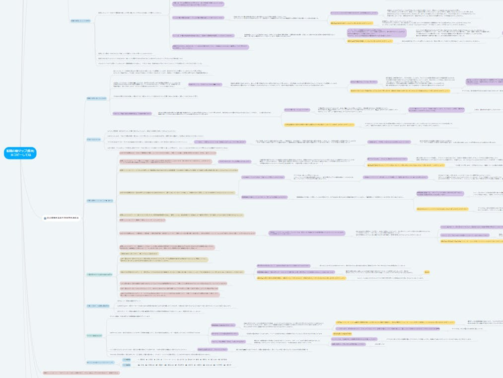 1ヶ月かけてコーチとの思考整理のラリーを3~5往復行い、終わる頃にはマインドマップはとんでもないコメント量で埋め尽くされます。
