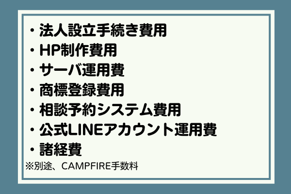 ご支援いただいた収益は、法人化に伴う費用の一部として使わせていただきます。