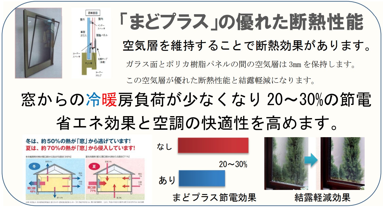 特許工法のポリカパネルで作られたガラス飛散防止パネル『まどプラス』を窓ガラスに取り付けることで、ガラスが割れても部屋の中に破片が入ってくるのを防ぎ、裸足で室内にいる子どもたちの安全を守ります。 窓を閉めている時や換気時に、遊んでいてぶつかっても大丈夫。断熱・防音素材としてもすぐれており、省エネにも貢献します。