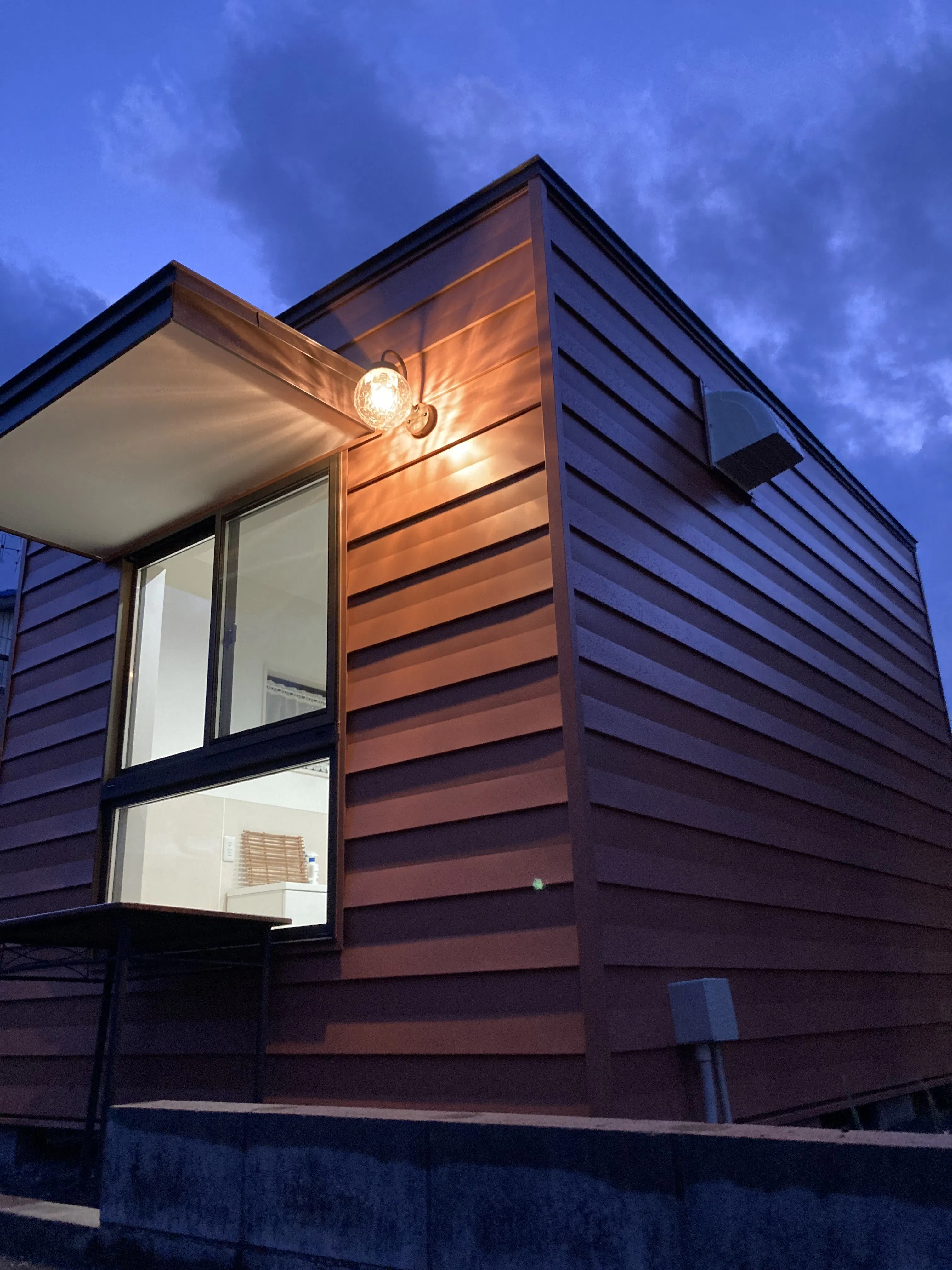 夜、まだオープンしていないパン工房 米花bakeの外灯を灯しました。美しいと感じました。