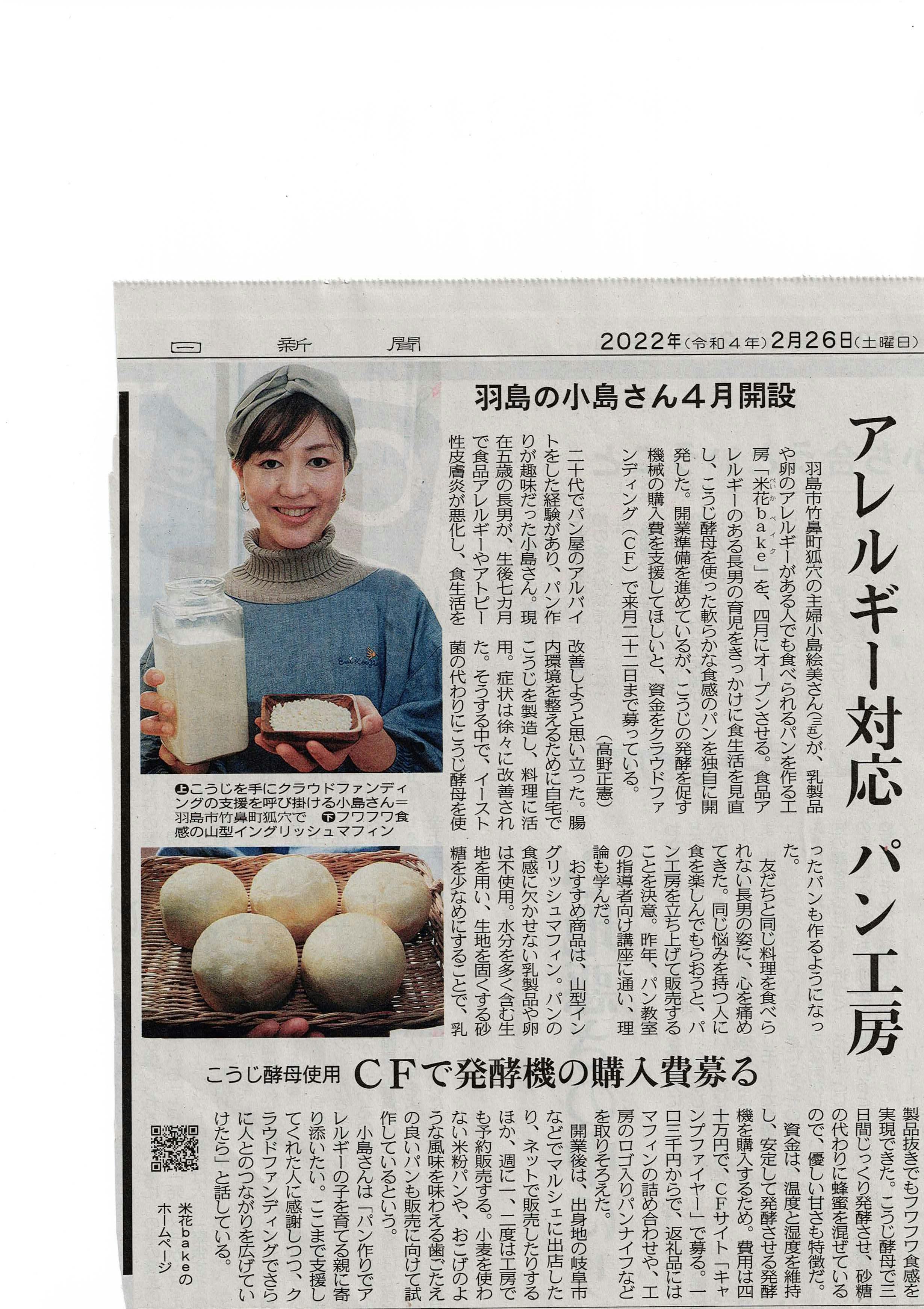 2022年2月26日 今朝の中日新聞に、掲載していただきました。