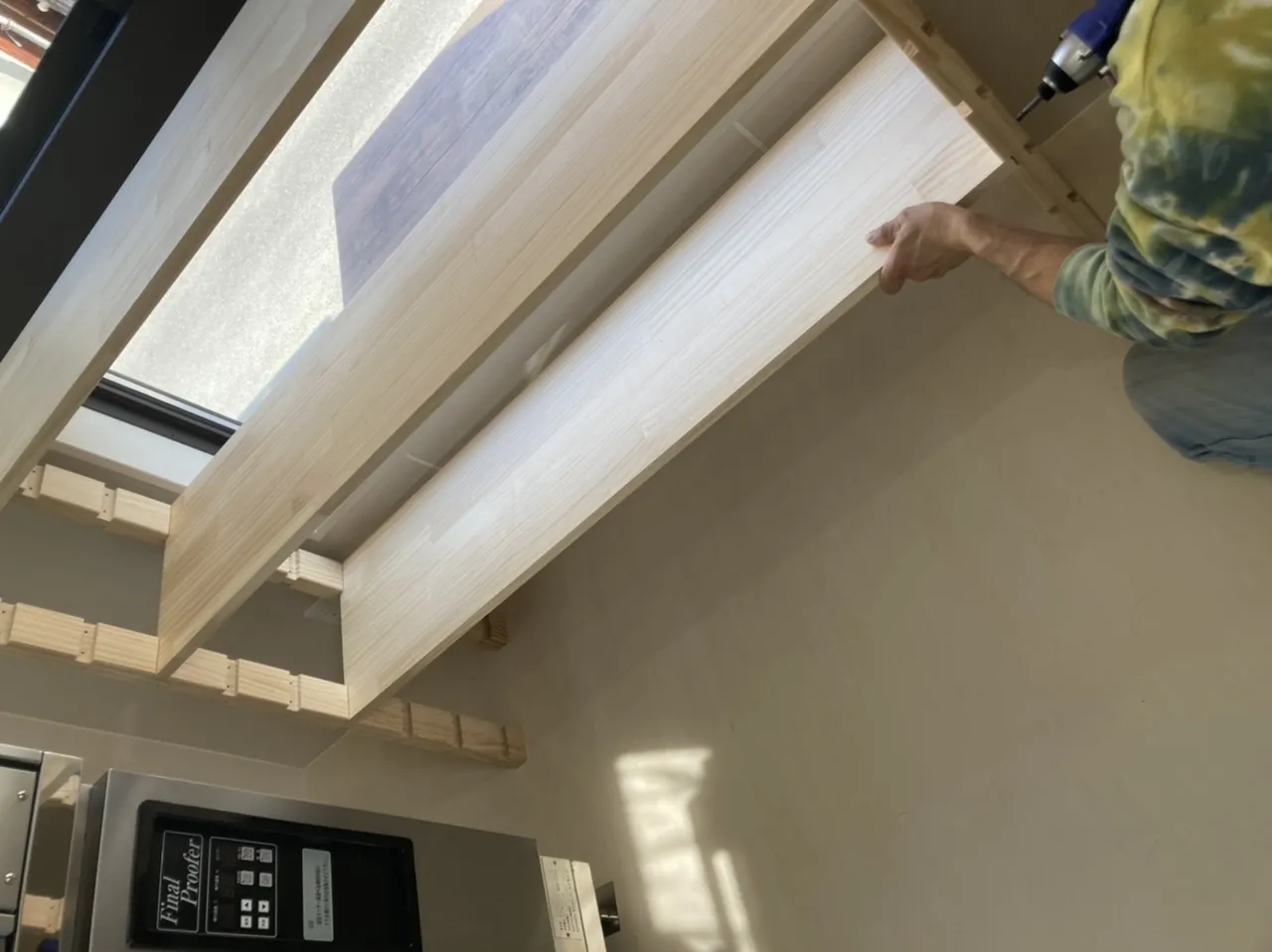 私の父に、ロールスクリーンを取り付けてもらったり、夫に陳列棚を作ってもらったり…