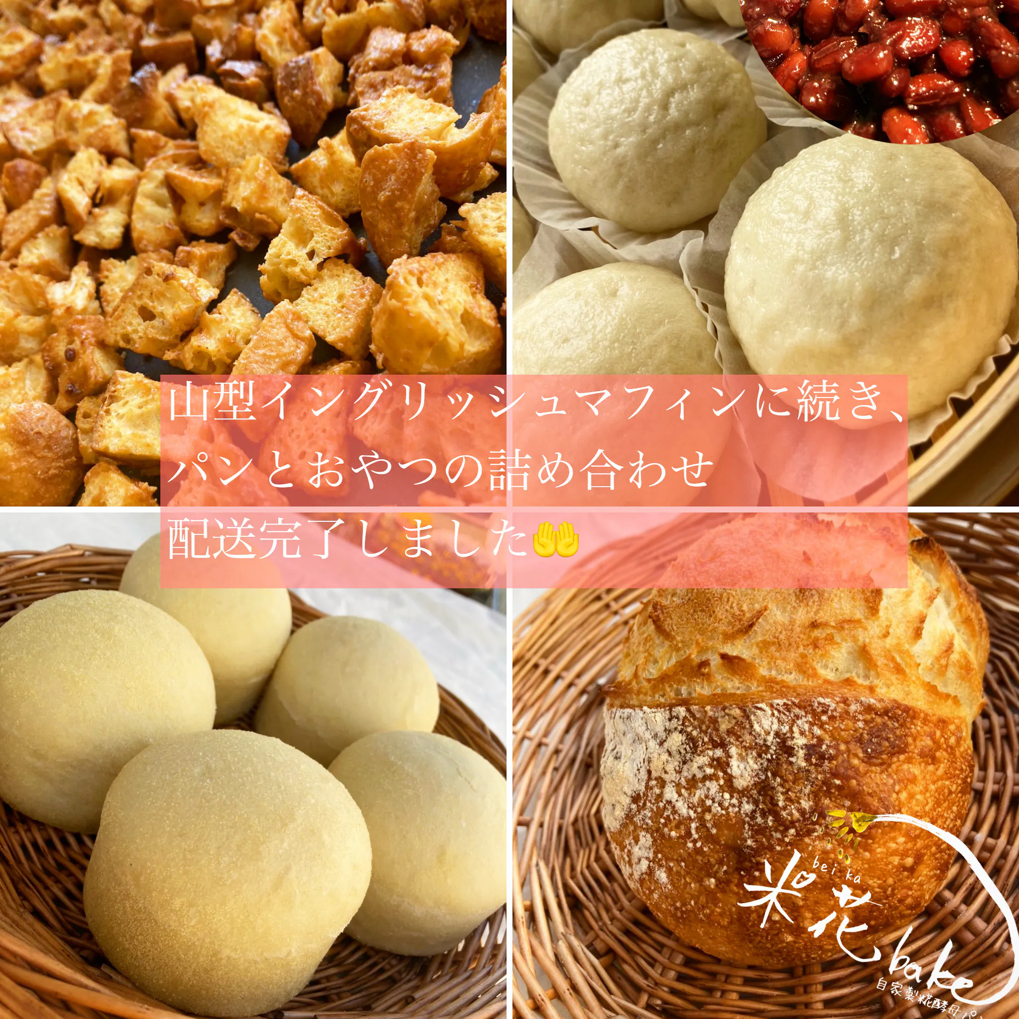 先週、山型イングリッシュマフィンのリターンに続き、糀酵母パンとおやつの詰め合わせセットの配送をしました。