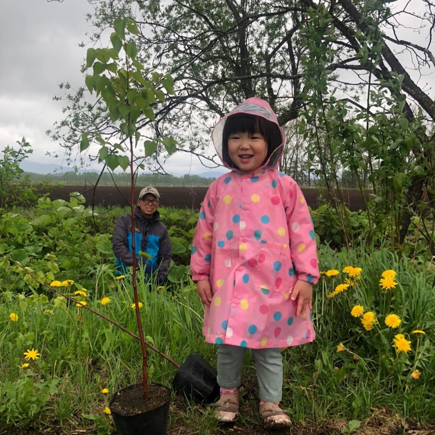 長女と植林作業しかし、植樹が完了するのに5年、白樺並木が景観として完成するのは約30年後2050年!私は65才になり、きっと次の世代が営農しているはずです。