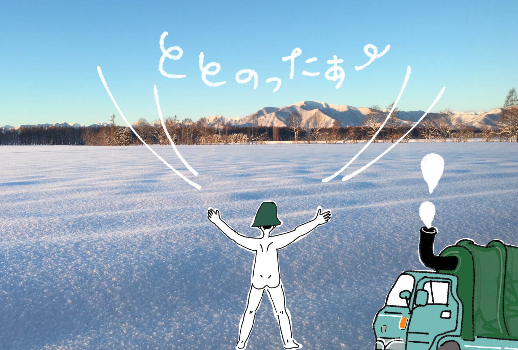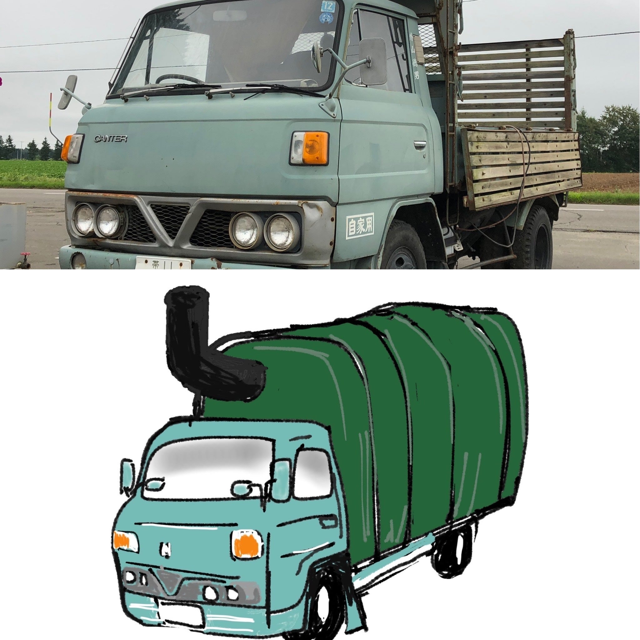 ということで、現役を引退したファームマシーンを活用して、1970年代の十勝の農場シーンを復刻させたサウナを作るプロジェクトが始動しました。主役は1976年製で十勝の多くの農場で活躍した名車「三菱ふそうキャンター(積載量2トン)」愛称はVキャンター。