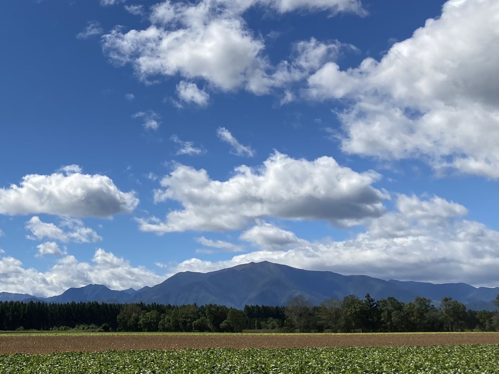 そう、岩内岳〜十勝幌尻岳〜戸蔦別岳にかけての日高山脈の山並みが、ここ清川・美栄地区からは横たわる観音様のお姿に見えるのです。