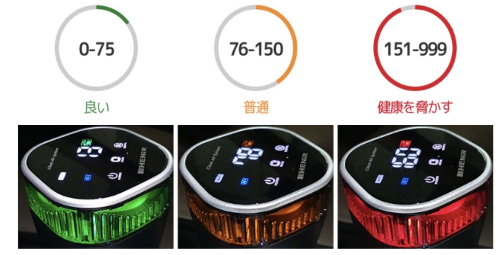 空気の質の数値は3秒間測定された平均値を表示します。