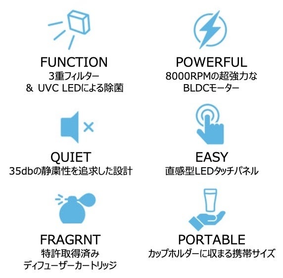 高効率・高性能の設計が適用された毎分8000回転のBLDCモーターが搭載されているため、車内の空気を迅速かつ強力に循環させます。使用するほど摩耗するブラシの代わりに電子回路を使用するブラシレスモーターですので半永久的使え、微細な有害物質がまったく発生しません。