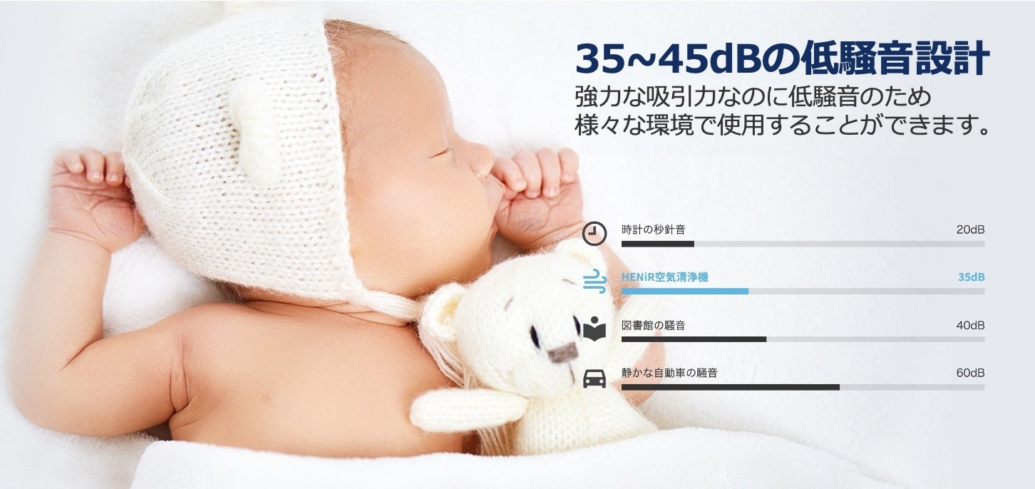 0.3μmより小さいウイルスはフィルターだけでは除去することはできません。HENiR(ヘニル)は単純に花粉や室内のホコリを除去するだけでなく、UV-C LED 275nm波長におよぶ強力な照射を利用しウイルスまで除菌します。