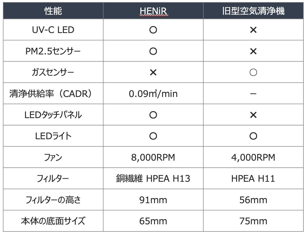 【HENiR(ヘニル)と旧型空気清浄機の比較】