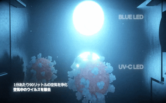 A.UV-Cは紫外線で人の目には見えないですが、波長の中でも除菌力が高く、人体に持続的に露出がされると、紫外線の中でも人体に有害です。そのためこれをフィルターでろ過された空気が通る通路に設置し、UV-C LEDの光が外に漏れ出ない構造にしました。 UV-C LEDが動作しない場合、LED画面のUV-Cのアイコンが消灯します。 (本製品の使用中はUV-C LEDが動作し、LED画面で確認することができます。)