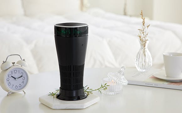 ・車内だけでなくオフィスや机上、キッチンなどの空気清浄にも効果的です。安心して立てかけておくことができ、シンプルなデザインなので、どんな場所にもスムーズに馴染みます。