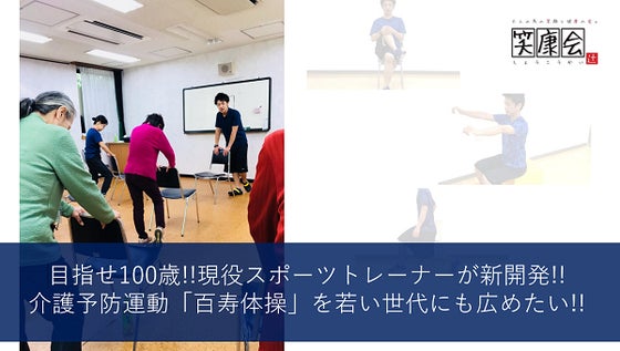 そして去年「運動を通して、自立した生活を送ってもらいたい。」という想いのもと個人事業主として独立し「笑康会」を立ち上げました。おかげさまで「百寿体操」に参加してくださる方も、少しずつではありますが、増えております。