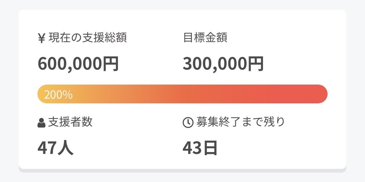 皆様おはようございます。テグミープロジェクトの村松美穂(むらまつみほ)・越川光(こしかわひかる)です。皆様からの多大なご支援をいただきまして、開始から2日で目標金額の200%を達成することができました!本当にありがとうございます。引き続きストレッチゴールである1,500,000円に向けてプロジェクトを進めてまいります。先日の活動報告でお伝えしましたストレッチゴールについて、近日中にプロジェクトページをリニューアルいたします。新たなリターンの追加もありますのでぜひご確認ください。今後ともよろしくお願いいたします。村松美穂(むらまつみほ)・越川光(こしかわひかる)