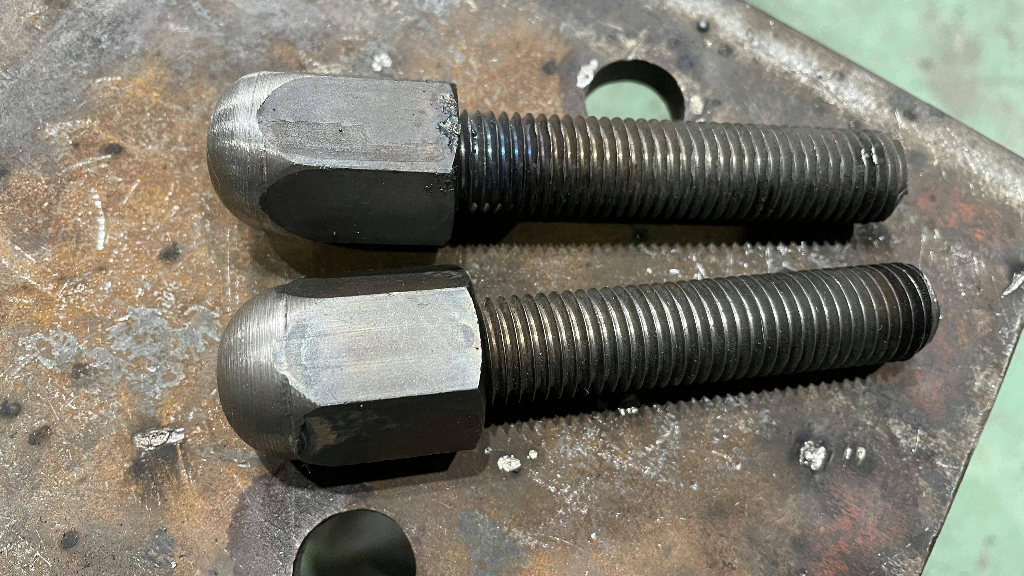 2022/02/27 19:38旋盤加工用治具の入手と組付けが完了し、寸切りボルト&長ナットが入手しましたので脚アジャストの部品加工を始めました。寸切りボルトの寸法切りを行い、長ナットを取り付け、仮付け、本付けを行い、専用治具で球面加工を行っています。 もっと見る