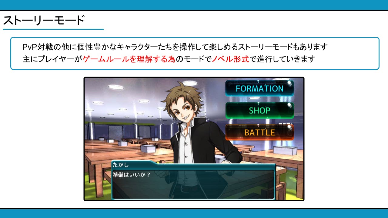 皆がやってみたくなる様な絵作り(ヴィジュアルの改善)、ゲームのルールを理解するための要素としてストーリーモードの実装が不可欠でそれらが備わって初めてオンライン対戦が成立することに気付き、これが第1弾・第2弾の段階的なリリースを行う経緯となりました。