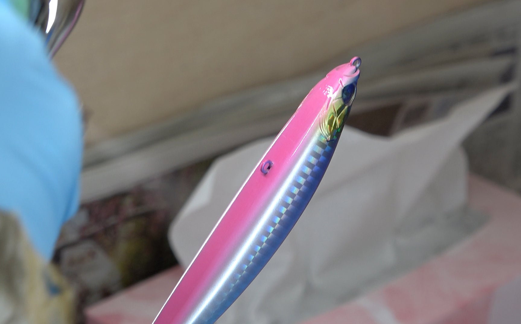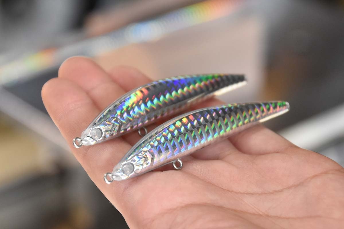 国産のホログラム紙をルアーに転写します。ルアーのカラーによってホログラムの柄を選定し、バリエーション豊かにします。
