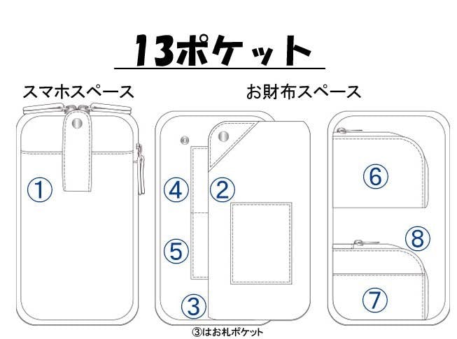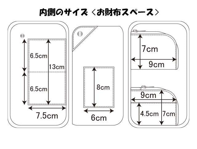 スマホスペース・お財布スペース・バッグスペースの3層に分ける事によってそれぞれが有効に機能するようにしました。