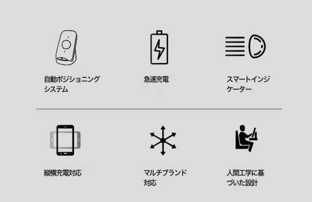 ※自動ポジショニングシステムとは、携帯電話側の充電コイルと充電器の出力部を正確な位置でフィットさせる機能。