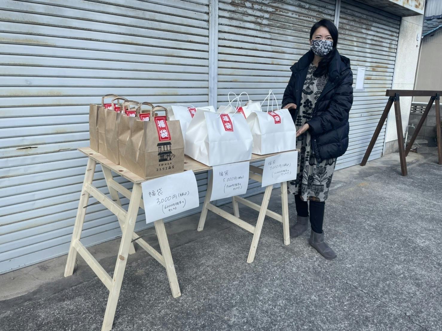 さて、1月3日には毎年恒例の福袋販売を弓削島の店舗前でさせていただきました。