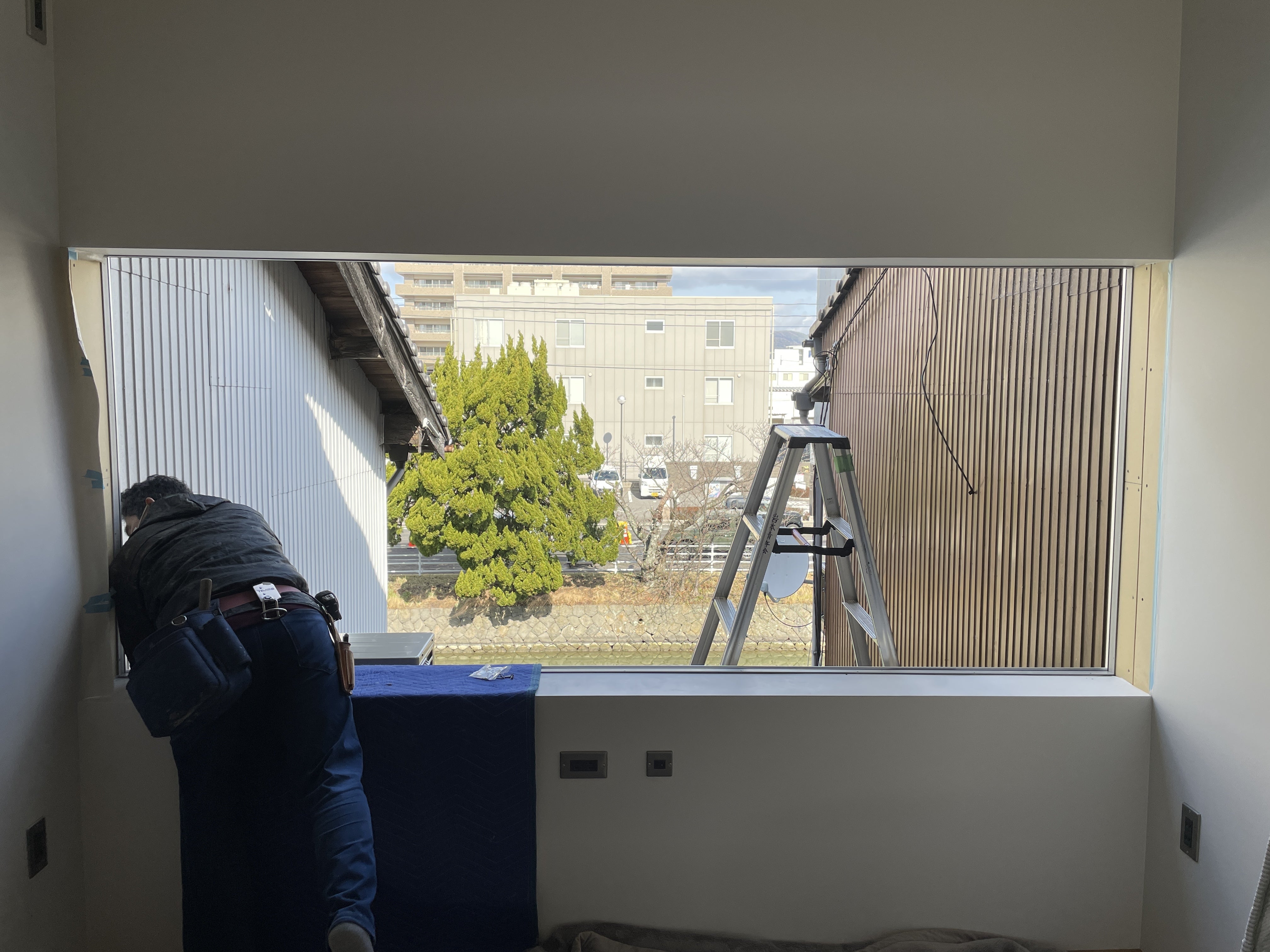 本日の活動報告です!今日は寝室のポイントとなる1枚ガラスの大窓、仮窓が付いていましたが、新しい窓ガラスの設置工事が行われていました。端から端まで通った一枚ガラスなので、迫力とインパクトがあり、仕上がりを見るのが楽しみです!あと、CAMPFIREのページトップ画を変更申請しました!解体した時の写真を使用していましたので、室内のイメージが伝わりやすいように、画像を製作してアップしています。変更申請が通るまで 2・3日かかるようなので、それまでの間は今のデザインの状態です。明日も活動報告したいと思いますので、是非ご覧ください。Instagramshitsu 出雲 → shitsu_shimaneshitsu 松江 → shitsu_matsue