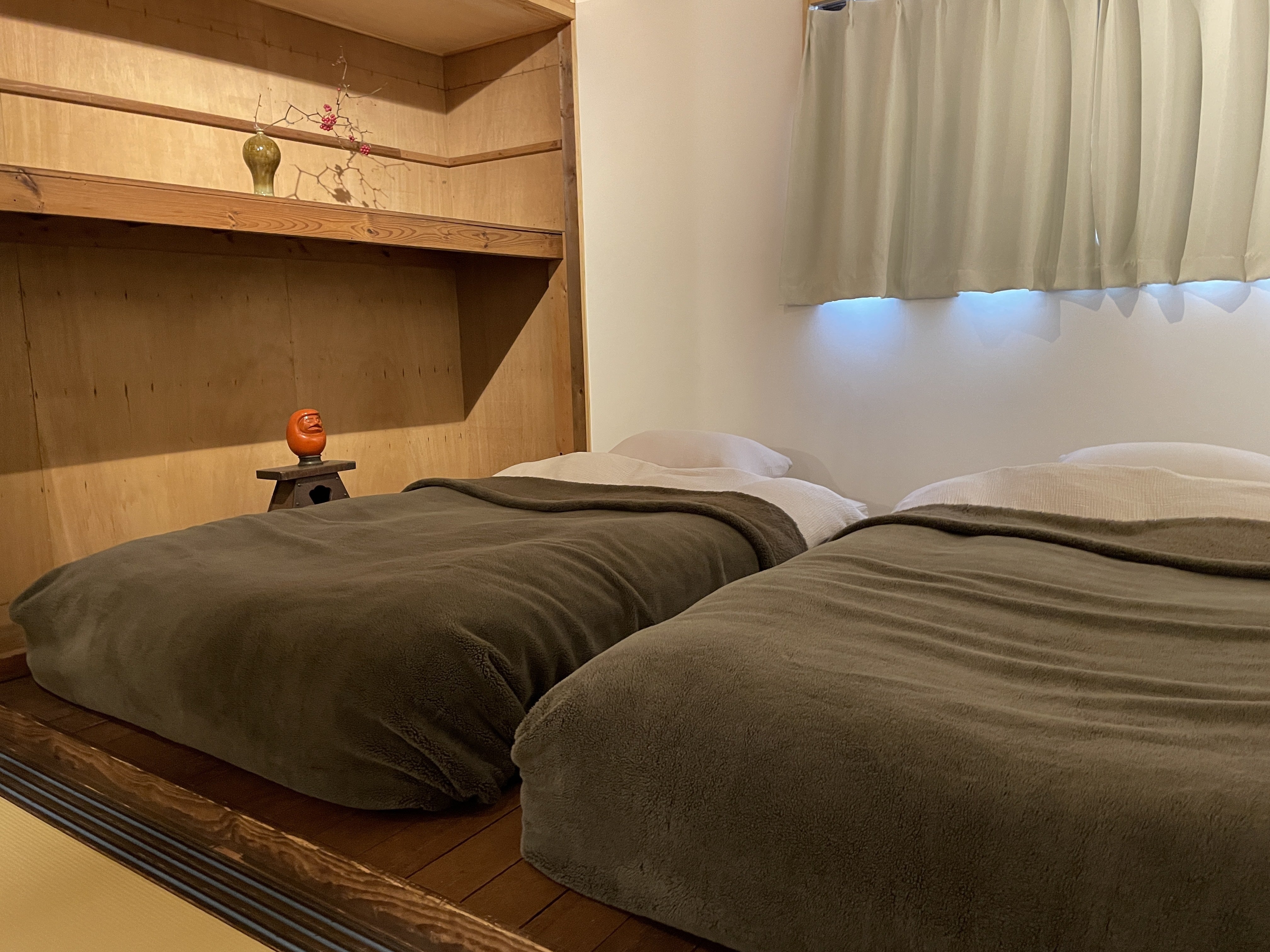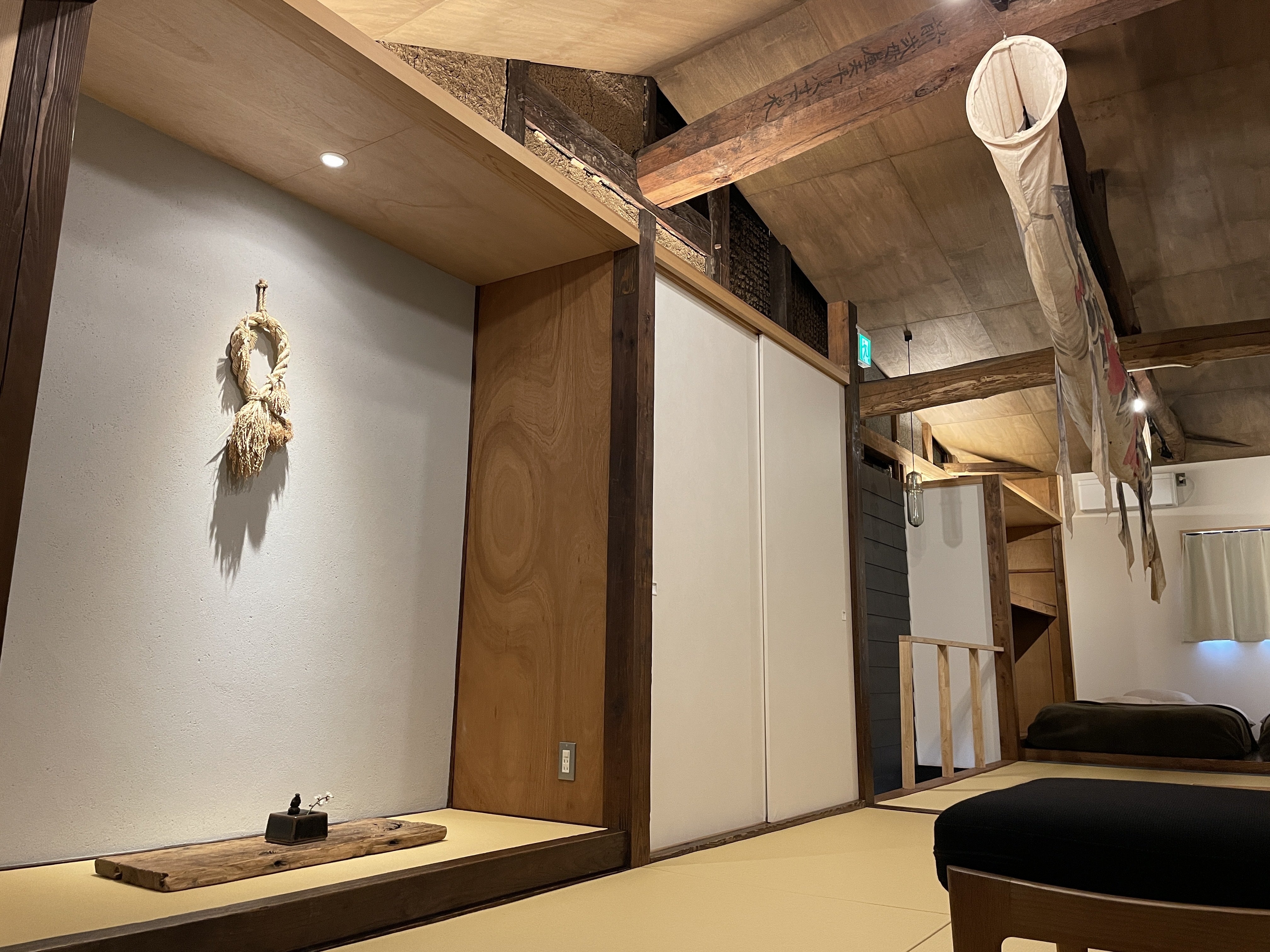 本日の活動報告です!今回のCAMPFIREでのクラウドファンディングのリターンに、松江と出雲shitsuで連泊プランがあるので、出雲のshitsuのご紹介。松江の宿の建物もかなり古いですが、出雲の宿も家主さんに聞いたところ、築80年以上は経っている町屋とのことで、しっかりとした梁がどことなく懐かしさを感じる建物です。味わいのある建物で素敵だったので、写真の床板は、もともと使われていた古材を再利用しています。また、すりガラスの引き戸もとても味わい深かったので、再利用したかったので枠を合わせてデザインしました。もともとの和の雰囲気を活かしつつモダンな空間に仕上げています!季節の野花をところどころに生けて、季節を感じて頂くしつらえをしています。落ち着いた空間が好みの方には、出雲のshitsuがオススメです!明日はパート②を投稿しますので、是非ご覧くださいませ。Instagramshitsu 出雲 → shitsu_shimaneshitsu 松江 → shitsu_matsue