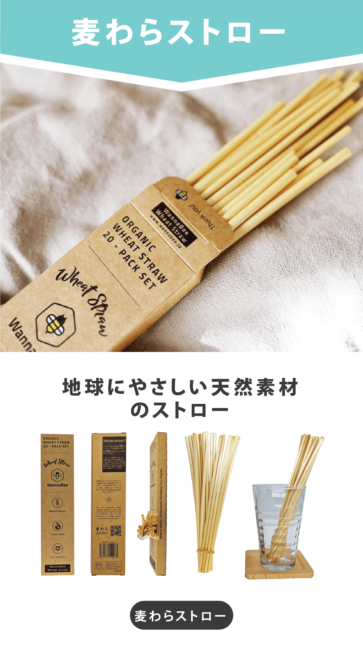 麦わらストローは、麦の収穫の際に取れた茎を乾燥させたものを使用する、昔ながらの手法で作られています。プラスチックに劣らない使い心地で2〜3回ほど繰り返し使用できます。破棄する際には土に返すことができるので、環境への負担も軽減することができるエコグッズです。