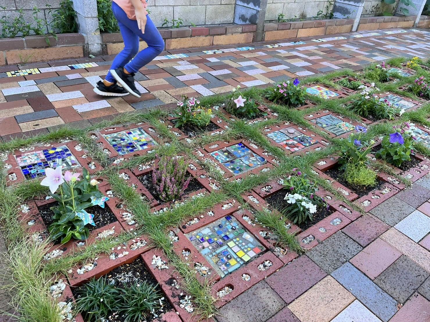 埋め終わってから、アトリエ作りで余った割れレンガでワークショップをしました。