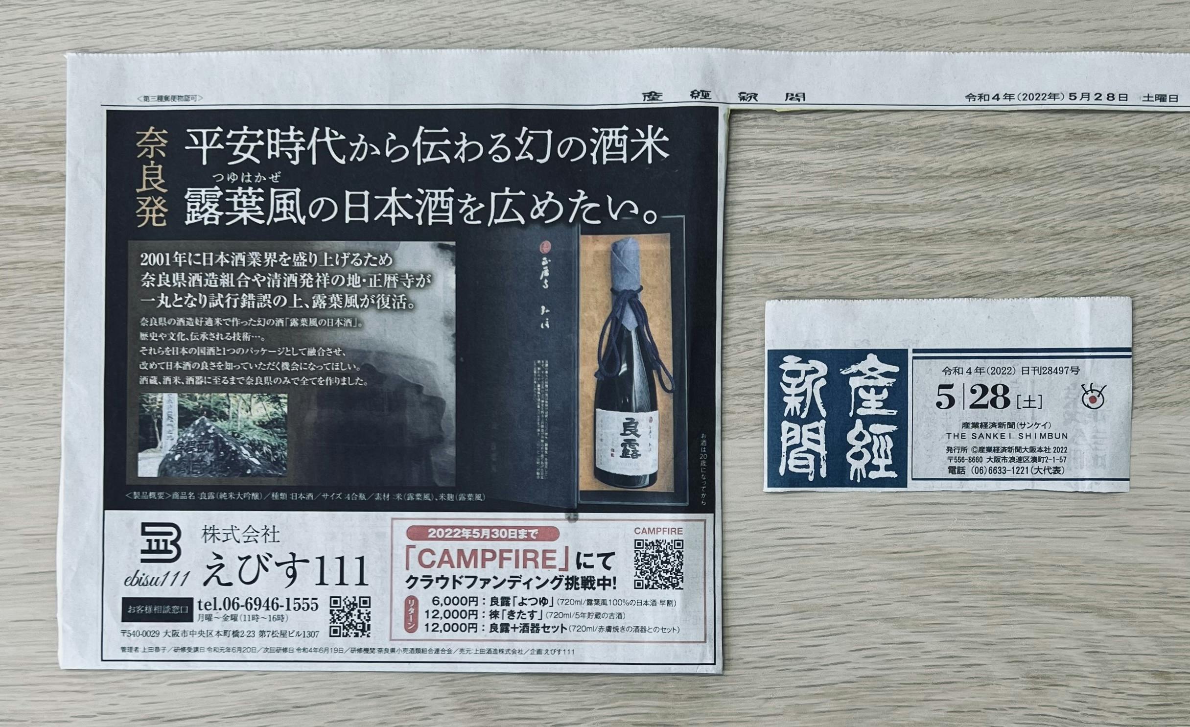 今日の産経新聞の朝刊に今回のクラウドファンディングの事が掲載されてます!!