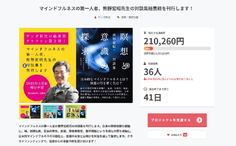 先週金曜日、2月18日よりサンガ新社の紙書籍第2弾となる、熊野宏昭先生の新刊『瞑想と意識の探求:一人ひとりの日本的マインドフルネスに向けて』のクラウドファンディングをスタートさせました。