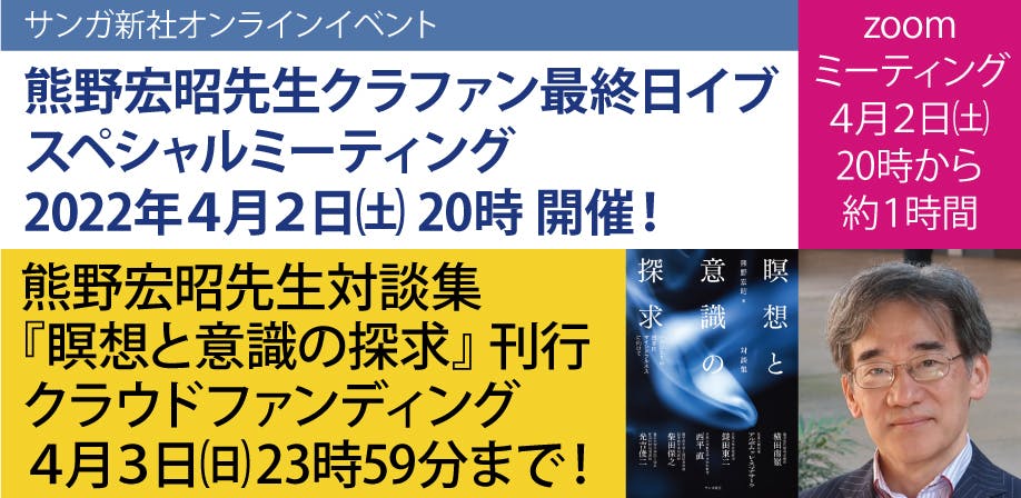 熊野宏昭先生対談集『瞑想と意識の探求』刊行
