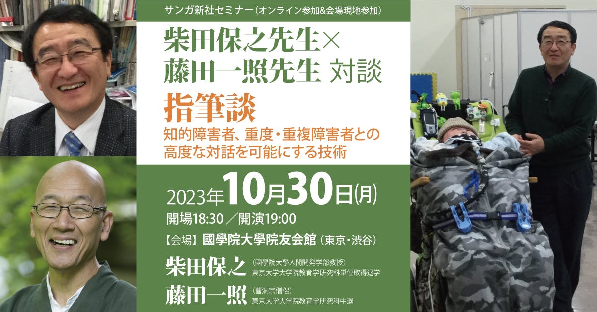 熊野宏昭先生の対談集『瞑想と意識の探求』(サンガ新社、2022年)のなかで熊野宏昭先生とご対談をいただいた柴田保之先生の「指筆談」をテーマとしたセミナーを開催いたしますので、ご案内いたします。対談集の中では、知的障害という概念や障害を持つ人たちの言葉についての根本的な捉え直しを柴田先生、熊野先生にお話しいただきました。