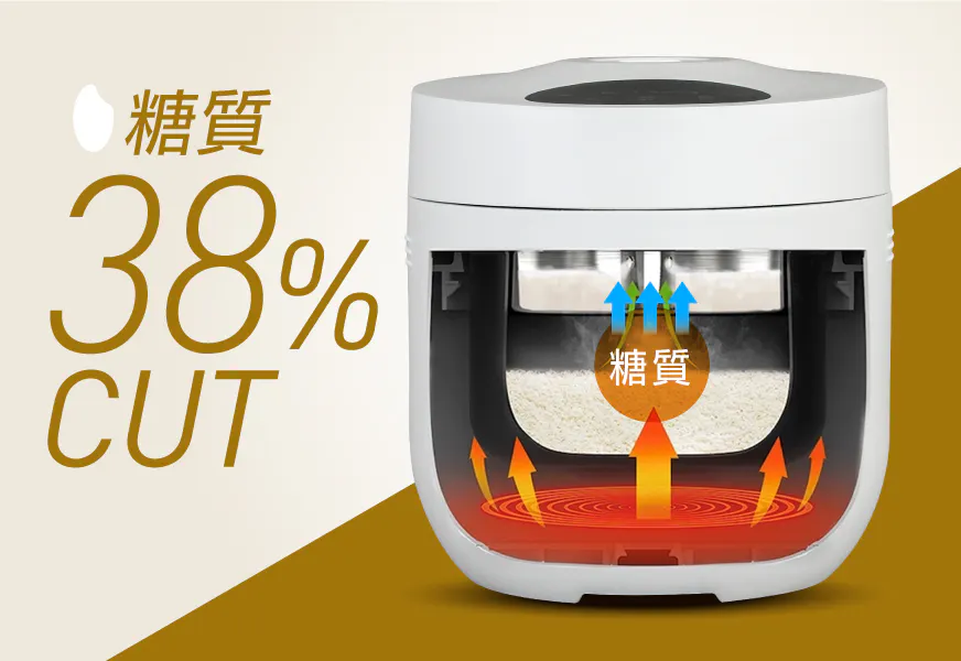 メーカーが本来のお米の味を保ったままカット出来る糖質量の限界に挑戦し、結果として38%という糖質カット率を誇る低糖質炊飯器の開発に成功しました。