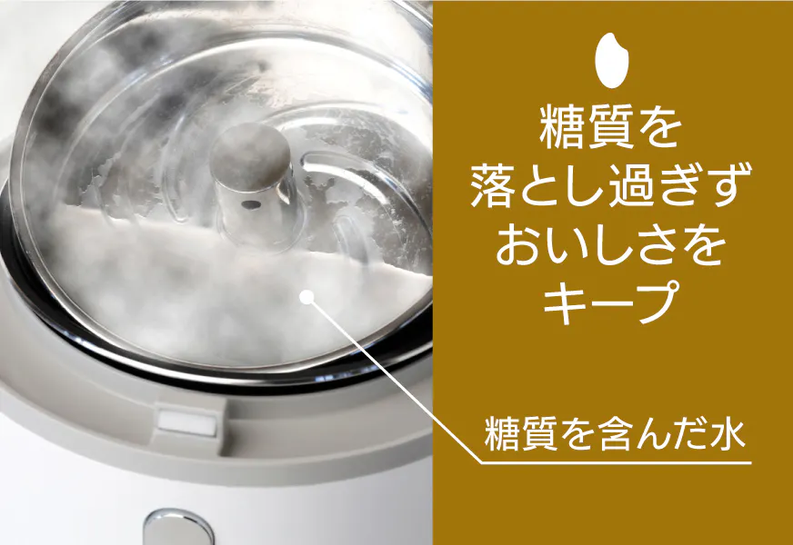 カロリーだけ落として、お米の味は落とさずにふっくらおいしく炊き上げます。