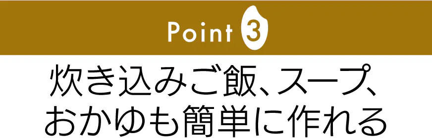 多彩なメニューモードを設けているので、炊き込みご飯やスープ、おかゆなども簡単に作れます。